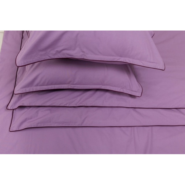 Комплект постільної білизни двоспальний євро. Матеріал - варена бавовна, Склад - 100% бавовна. Колір лаванда. В комплект входять дві наволочки 50*70, півковдра 180*200, простирадло 220*240. Наволочки оздоблені "оксфордським" вушком, мають карман. Півковдра має застібку "блискавку". Можлива комплектація з простирадлом на резинці.