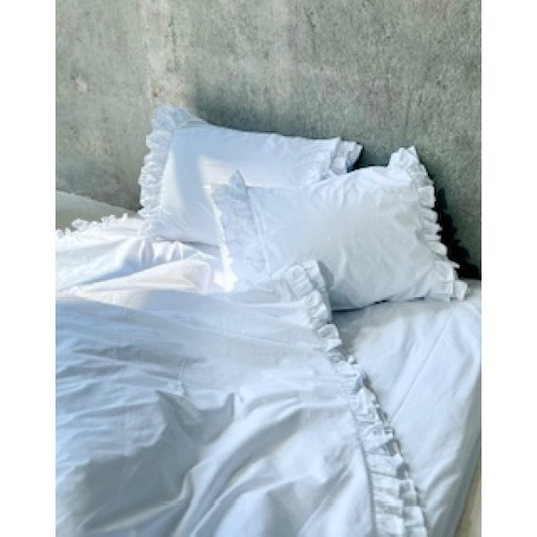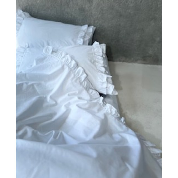 Комплект постільної білизни з вареної бавовни з рюшем, двоспальний, колір білий